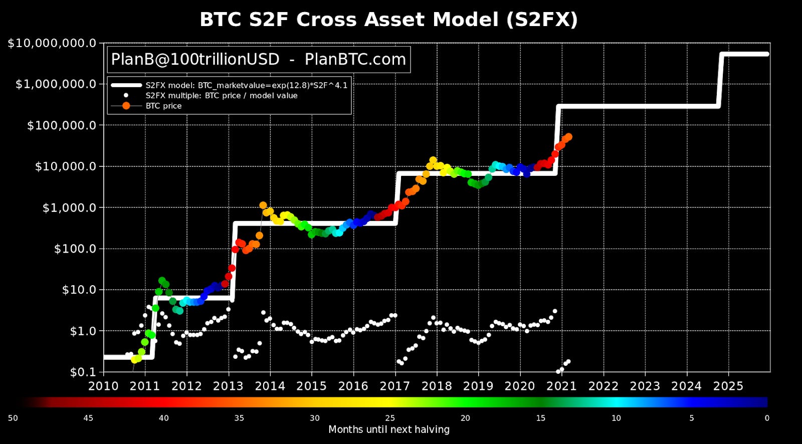 Many models in the past were used to predict Bitcoin price; only 1 model has withstood the test of time since 2010 - The stock to Flow (S2F) cross-asset model by PlanB @100trillionUSD. This is used for predicting the price of gold and silver; it has been pretty accurate in predicting the price of Bitcoin.