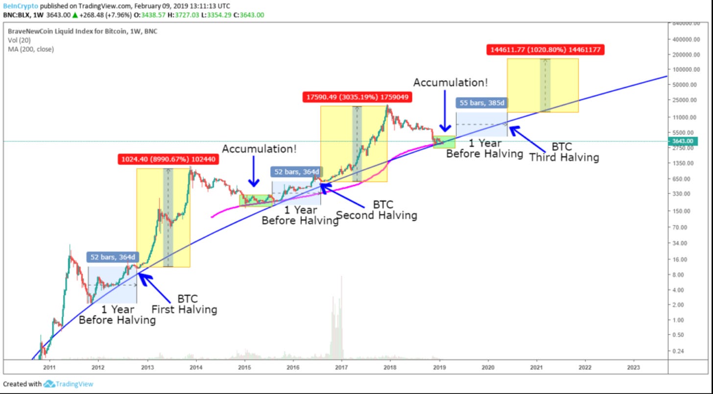 1 yr before halving starts the race. 1-2 yrs after halving is where money is made. 3rd year where consolidation/accumulation happens and some price correction.