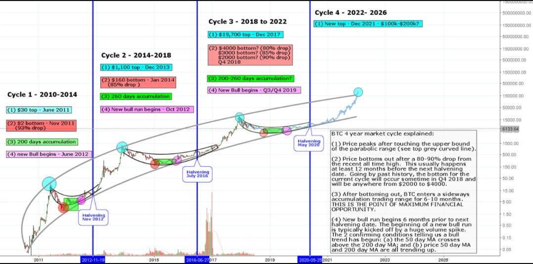 Every 4 yrs Bitcoin mining reward halves; thus creating supply shortage and increasing demand. Since Bitcoin is the dominant Cypto, everything else moves in relation to it.